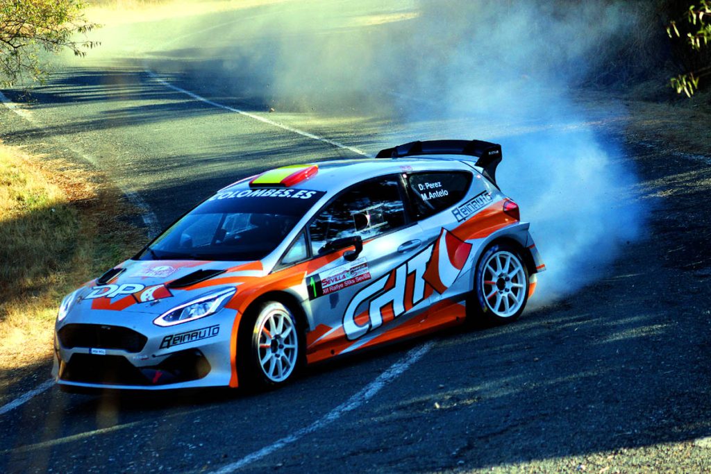 El Ford Fiesta Rally2 de Pedro David Pérez, líder del Campeonato de Andalucía de Rallyes de Asfalto, y Miriam Antelo, segunda clasificada en el certamen de copilotos