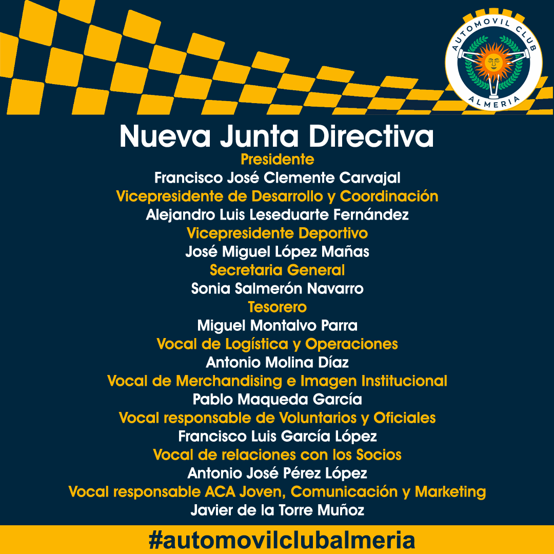 La Comisión Electoral del Automóvil Club de Almería ha proclamado como nueva Junta Directiva a la candidatura encabezada por Francisco José Clemente Carvajal, única presentada en las fechas previstas por el calendario electoral.